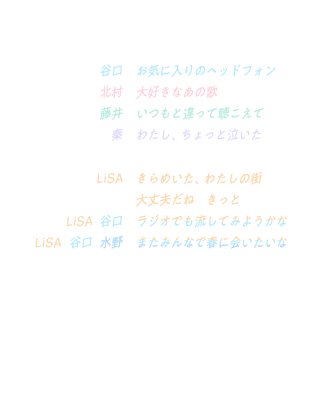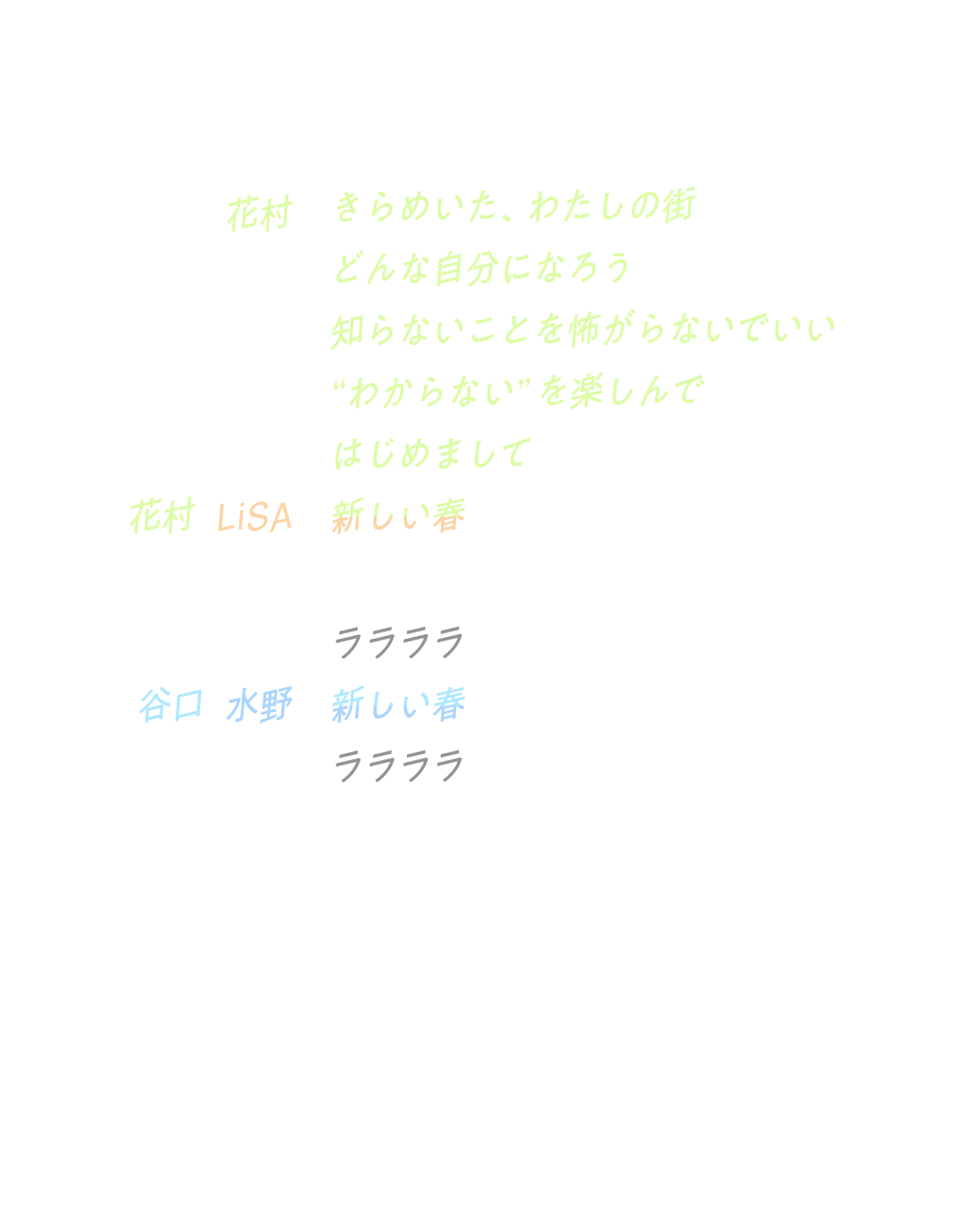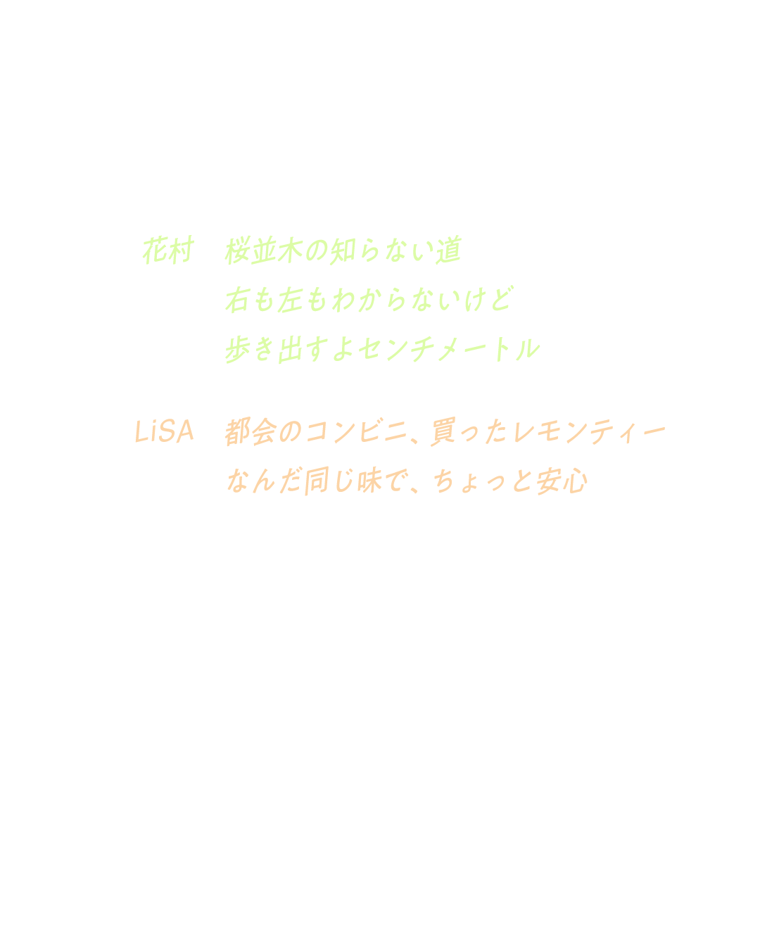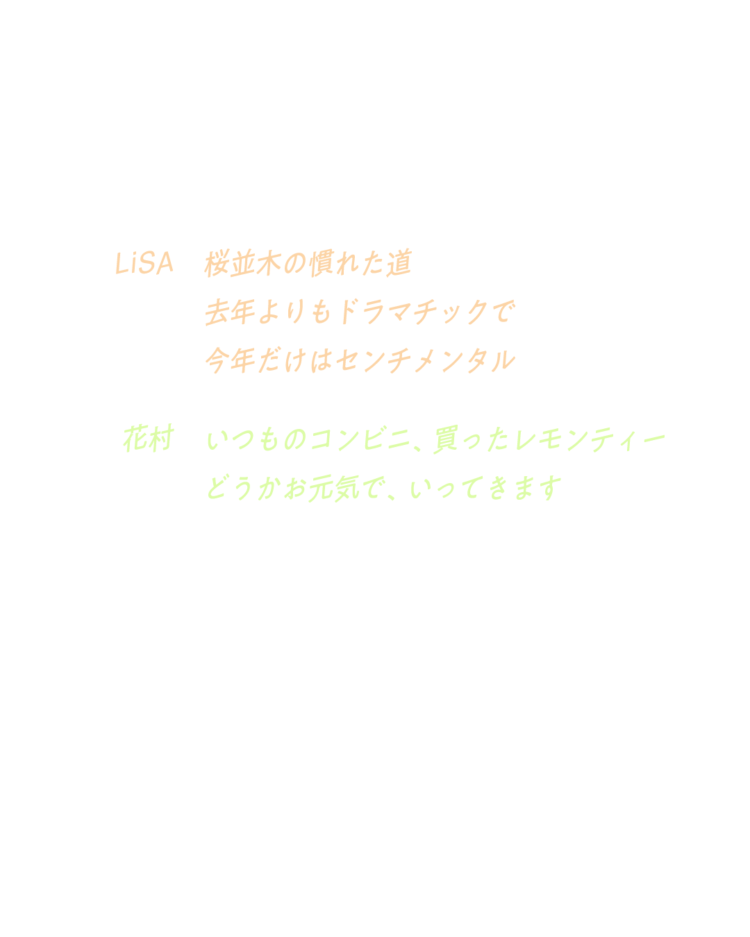 楽しみも不安も全て包んで、あなたの新生活のテーマソングとなれば幸いです。