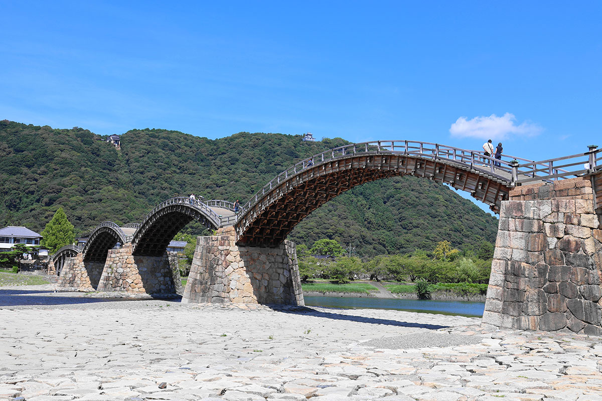 岩国といえば、やっぱり「錦帯橋」。清流・錦川にかかる五連の木造アーチ橋は、美しく圧巻の景観です。「岩国城」から街並みを一望したり、郷土料理「岩国寿司」に舌鼓を打ったりと、岩国の魅力をたっぷり満喫。