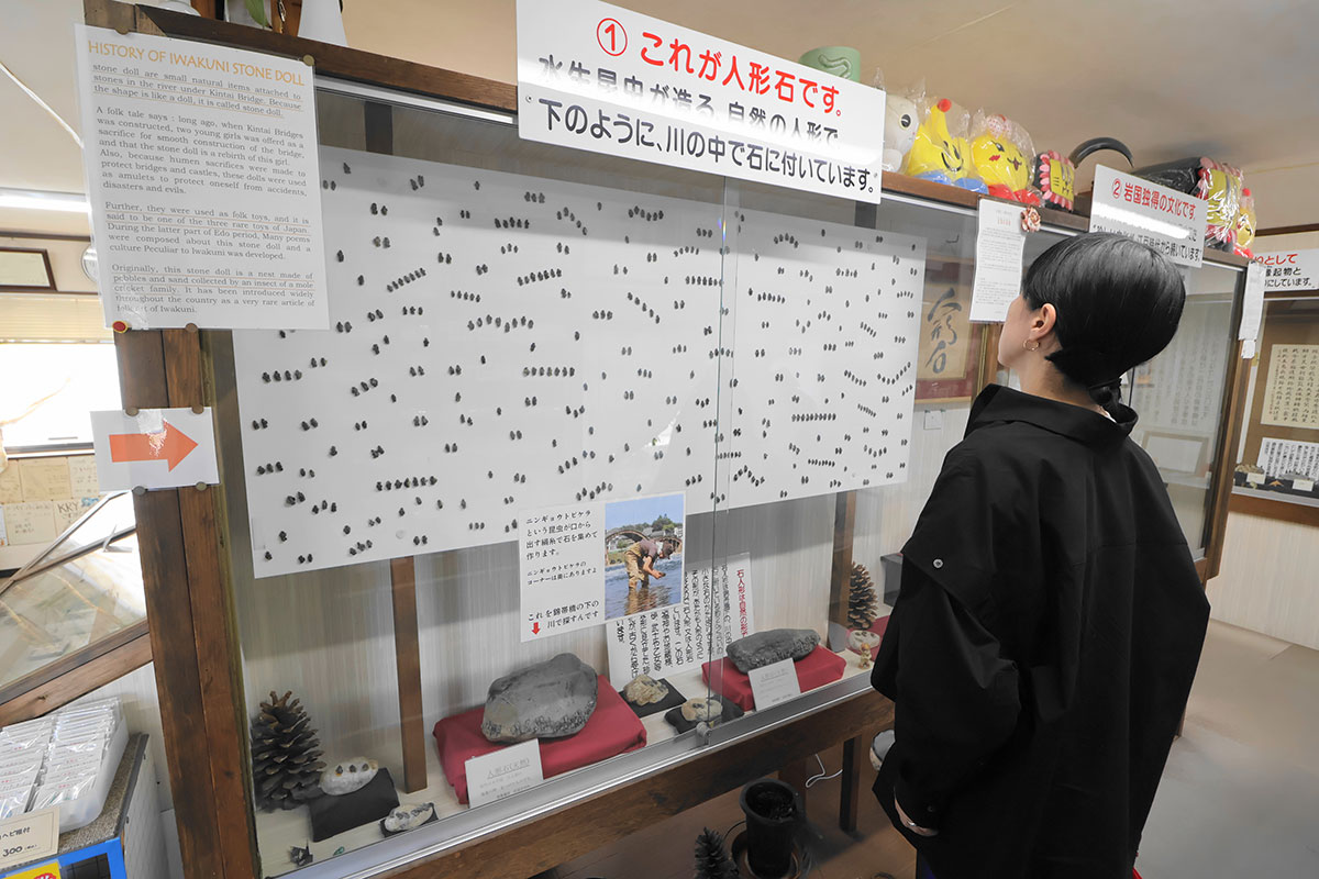 錦帯橋のふもとにある「岩国石人形資料館」。江戸時代から続く民芸品のひとつで、なんと小さなムシが作った石でできた人形なんです!