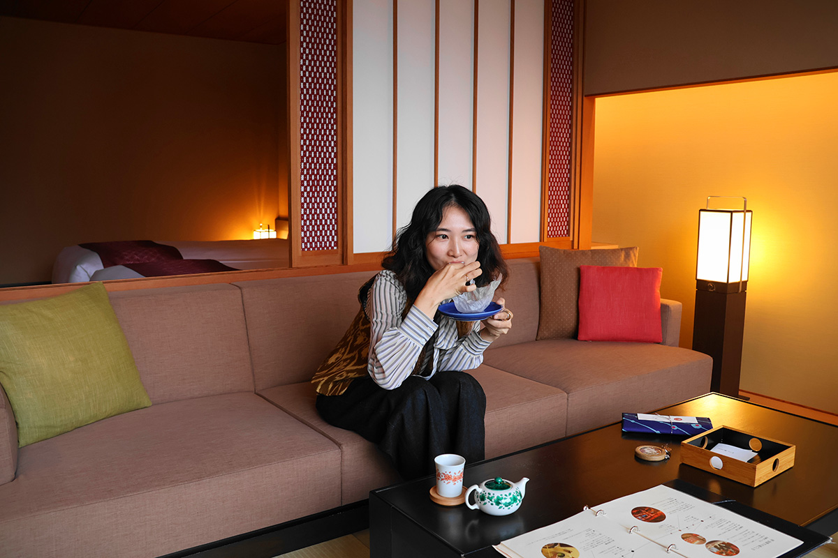 加賀友禅や水引など、加賀の伝統工芸が設えられたお部屋に、旅の気分もぐっと高まります