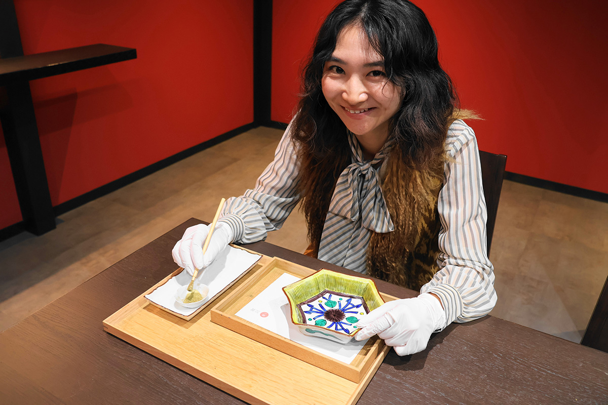 金継ぎ工房で「金継ぎいろは」を体験。日本の伝統的な修復技法についても、丁寧に説明してくれます