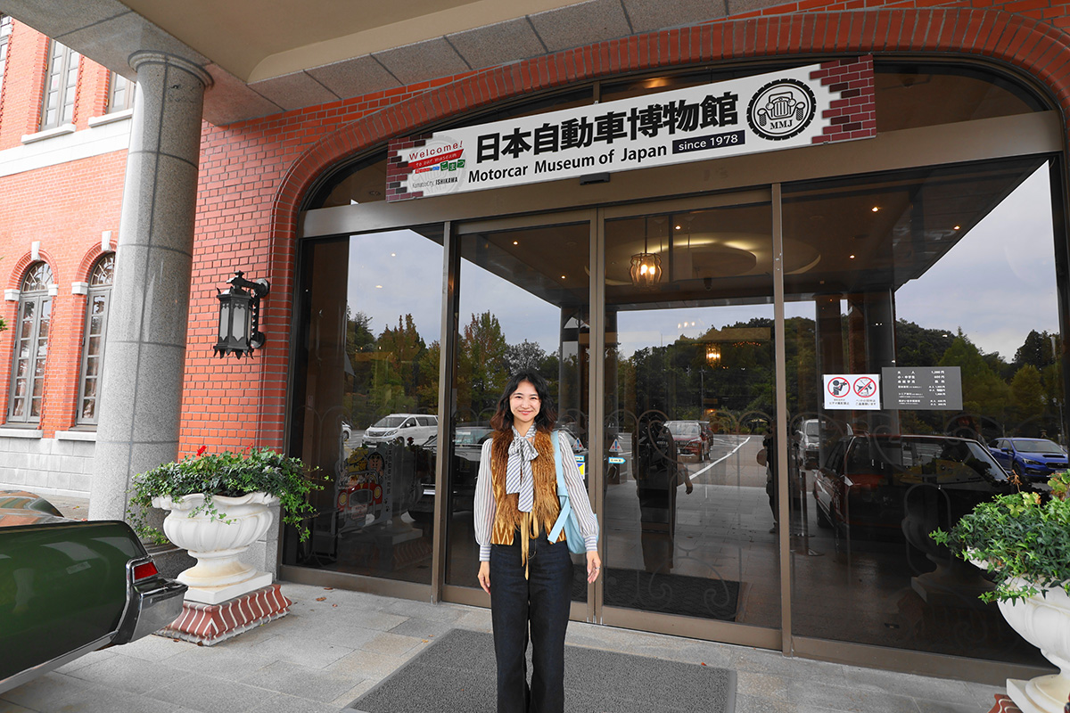 日本一の展示台数を誇る「日本自動車博物館」へ。レンガ造りの建物も趣があります