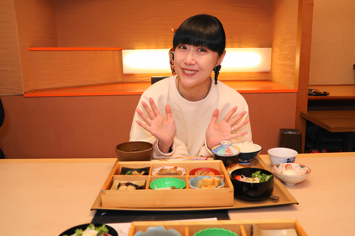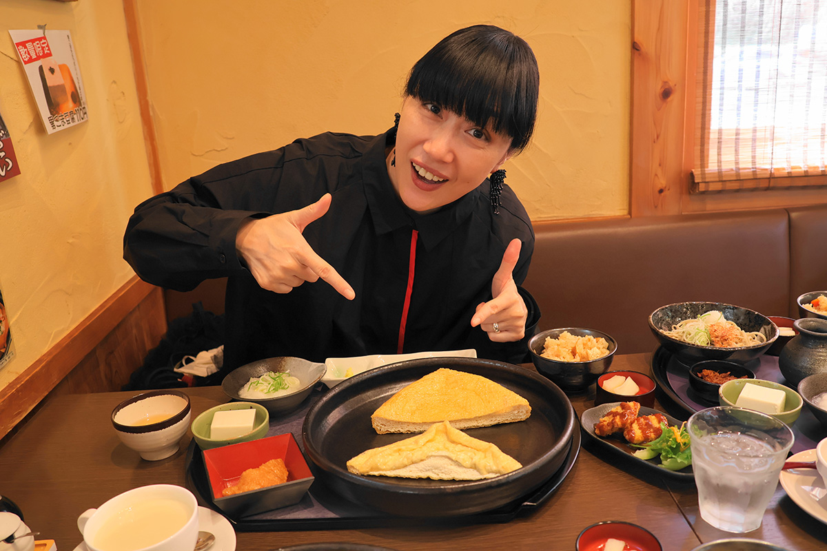 福井県は“恐竜王国”ということもあり、JR福井駅前には大きな恐竜ロボットが! 大きいのは恐竜だけではありません。福井県は油揚げの消費量日本一! 揚げたての油揚げがいただけるレストラン「谷口屋」では大きな油揚げを堪能しました。