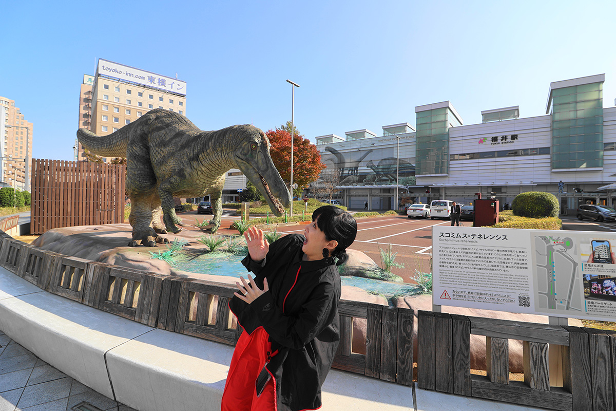 JR福井駅前には大きな恐竜ロボットが! リアルな動き、鳴き声にびっくり!