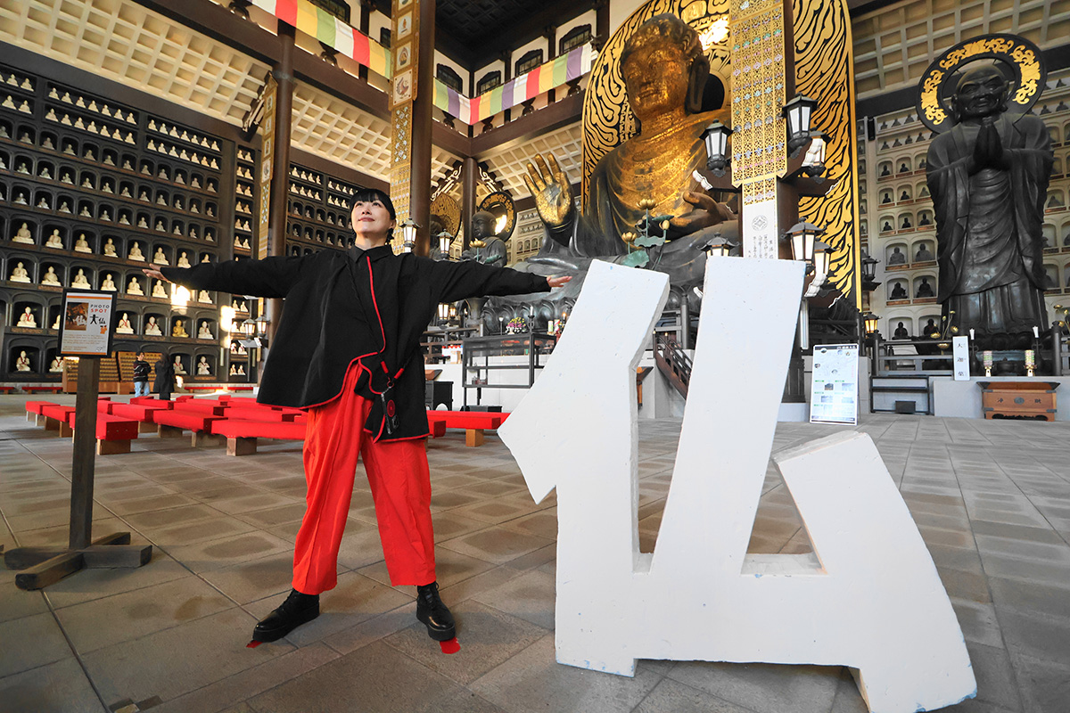日本一の大きさの坐像「越前大仏」。壁一面に1281体の仏像がずらりと並んでいる様子も圧巻です