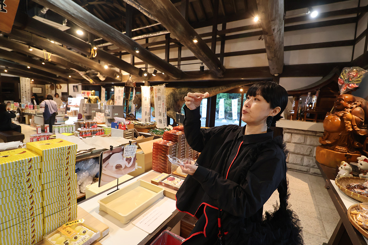 王道から洋風、進化版など羽二重餅の魅力が詰まった直売所。試食もできるので、色んな味を試せますよ