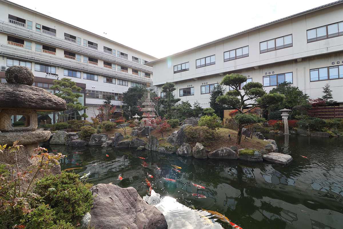 あわら温泉にある温泉旅館「美松」。美しい日本庭園は散策もでき、夜にはライトアップも実施されています