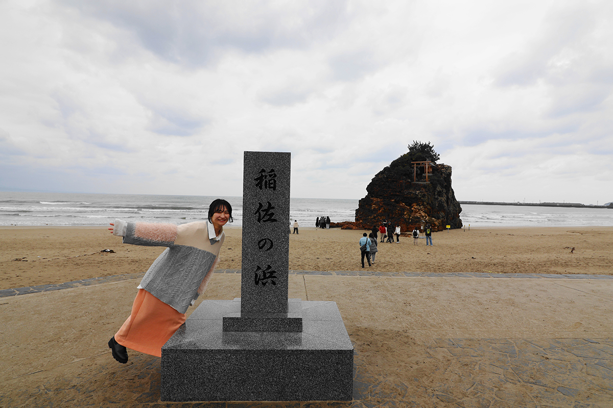 出雲大社の参拝の前にぜひ立ち寄りたいのが「稲佐の浜」。神々が最初に降り立ったとされる、神話の始まりの場所です
