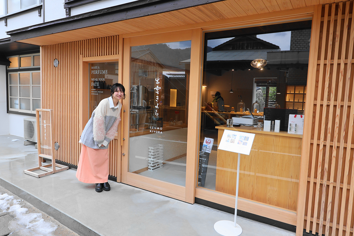 「出雲きよら」で旅の思い出にぴったりな“お守り香水”作りの体験をしたり、出雲そばや出雲ぜんざいなど、地元ならではのグルメも大満喫♪