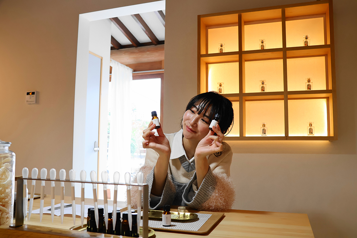 12種類のアロマオイルから直感で選び、自分だけの“香りのお守り”を完成させます