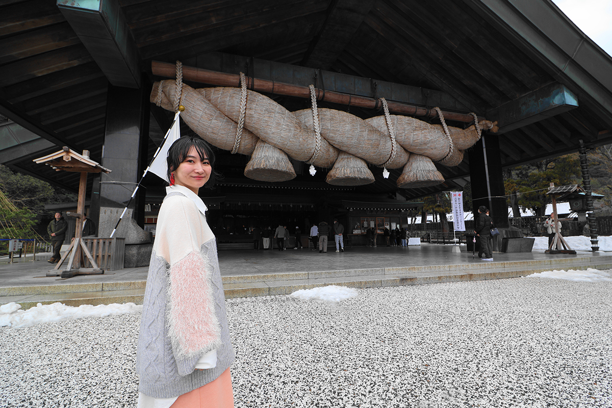 縁結びの神様を祀る「出雲大社」へ参拝。神楽殿に掲げられたしめ縄は日本最大級!