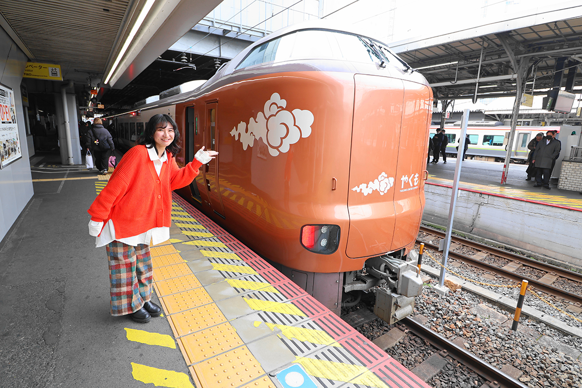 岡山駅からは特急「やくも」号で島根県へ。全席コンセント付きの座席など、快適な車内設備でのんびり列車の旅が楽しめます