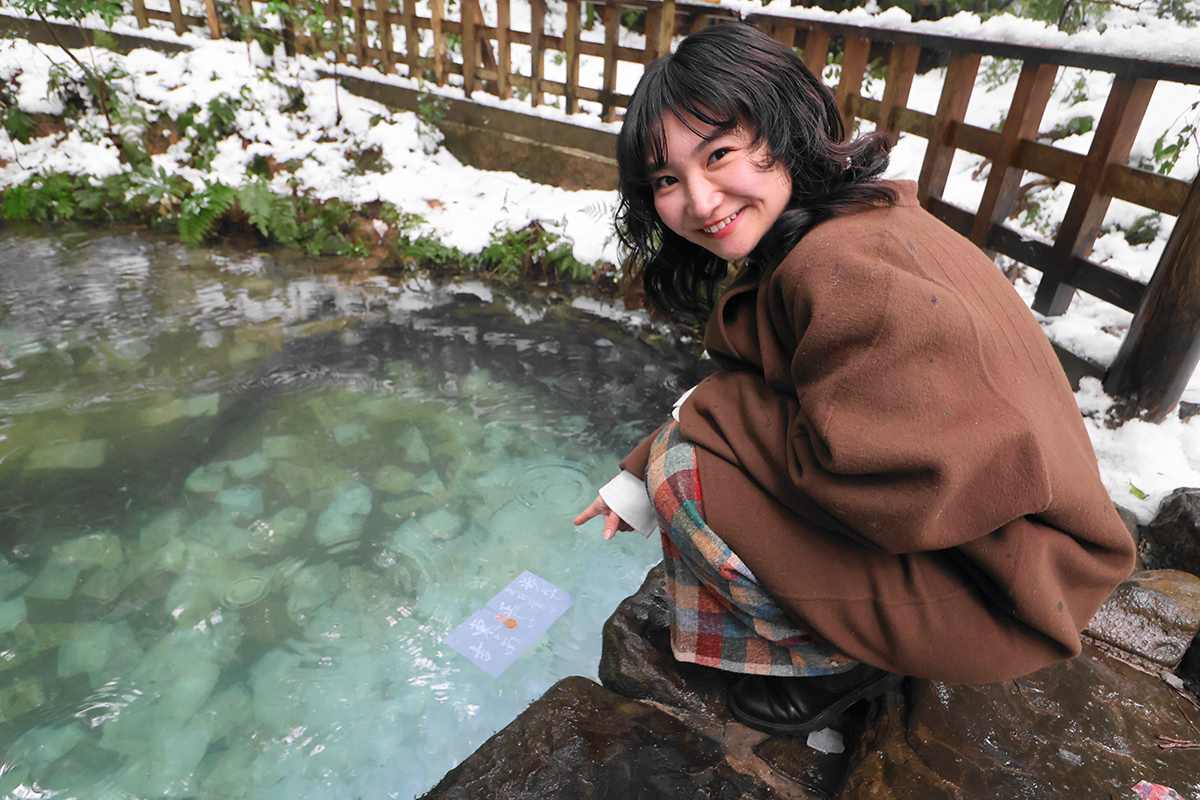 神社の裏にある「鏡の池」では占い用紙を水面に浮かべて占う「縁占い」が話題。紙が沈む距離や時間で、ご縁を占います