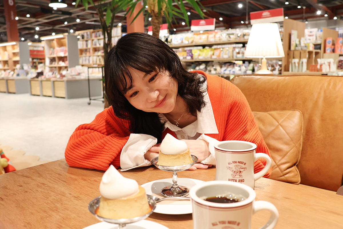 書店に併設されたカフェ「IAM COFFee Pizzeria&Cafe」。地元産の卵を使ったプリンを食べながら、旅の計画を立てるのも楽しいですよね♪