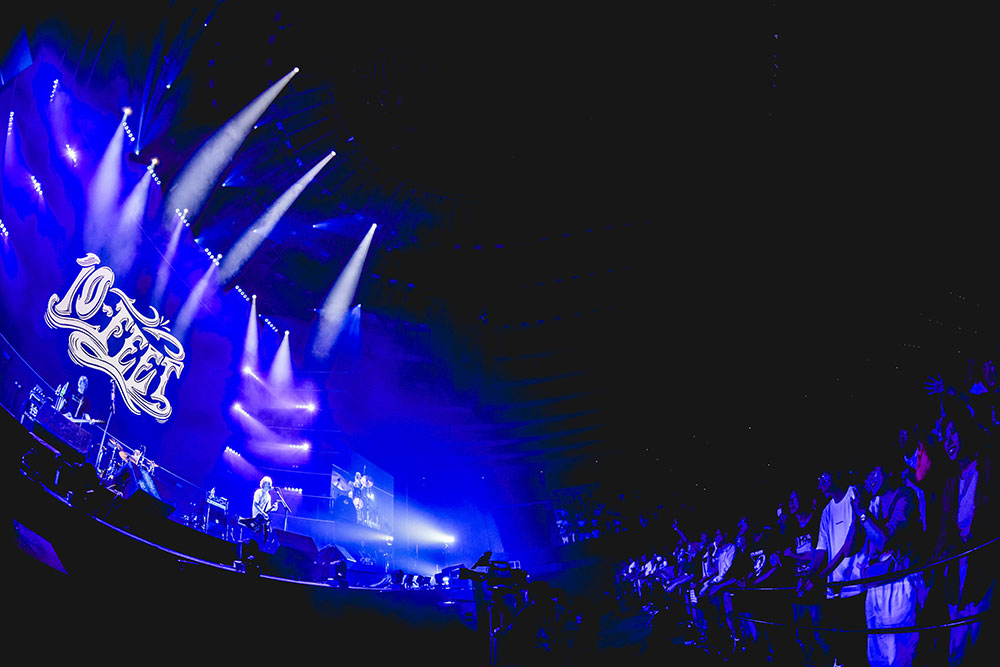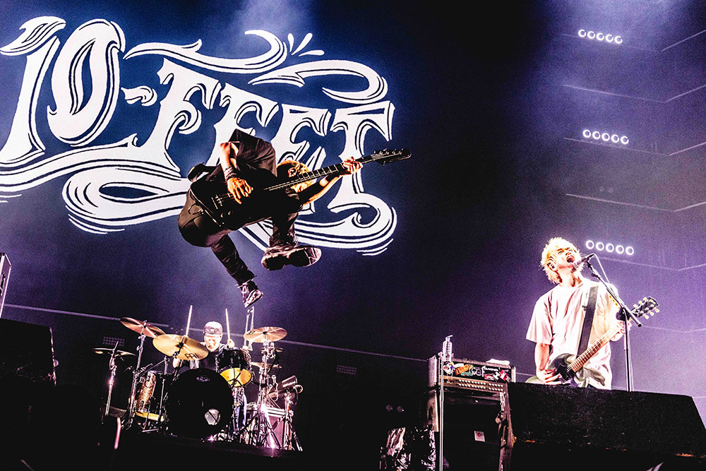 TAKUMA(Vo/Gt)が「行くぞ!」と声を掛けると、「RIVER」からライブハウスさながらの熱量をぶつけ、10-FEETならではの”ライブパワー”で会場は一気にヒートアップ!