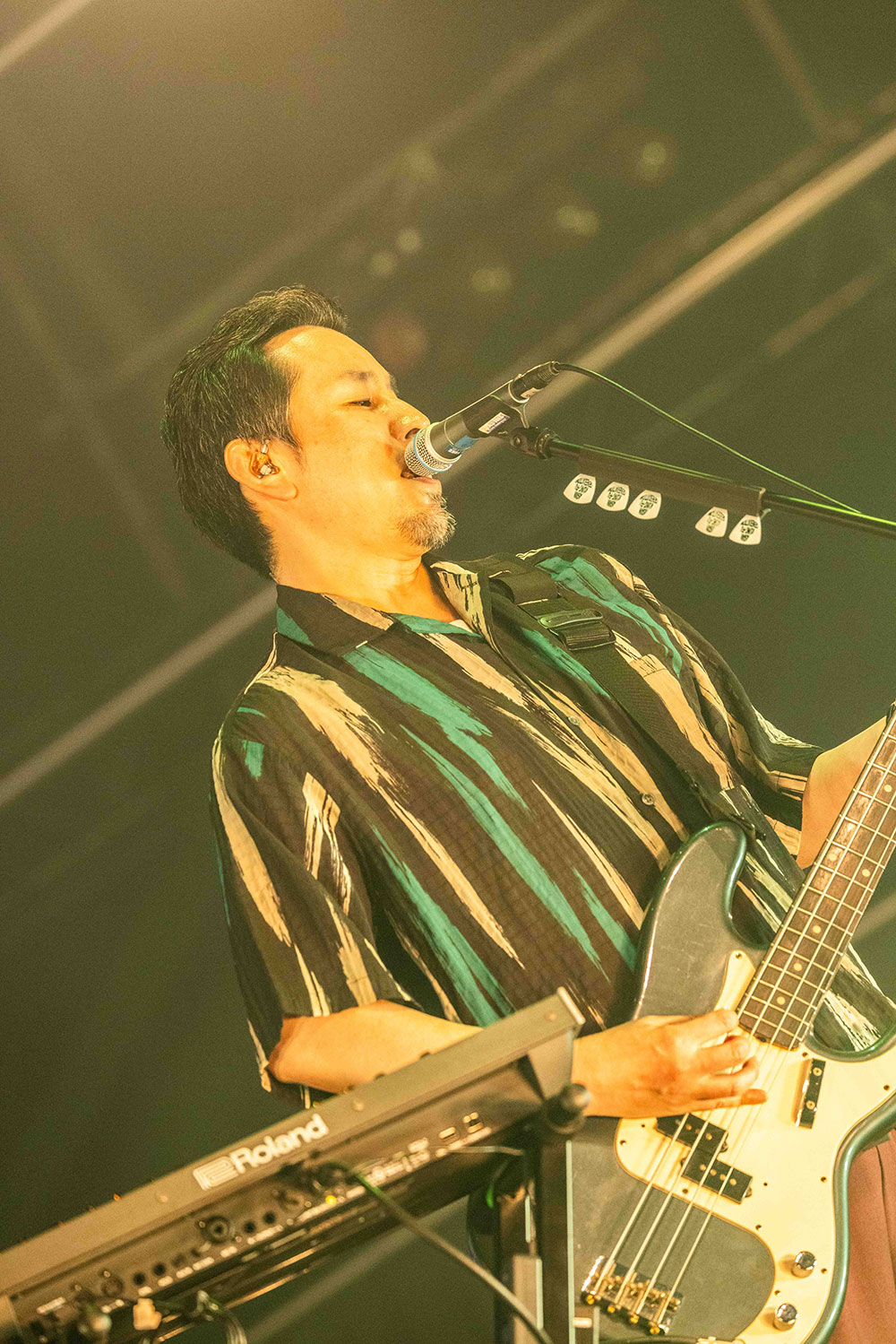 1曲目「Re:Re:」のイントロが鳴り響いた途端、割れんばかりの完成が響き渡る。 喜多建介(G/Vo)が爪弾く緻密に作り込まれたメロディ、山田貴洋(Ba/Vo)のご機嫌なベースラインに魅せられ、観客の誰もが破顔の表情を見せながら拳を高く突き上げている。