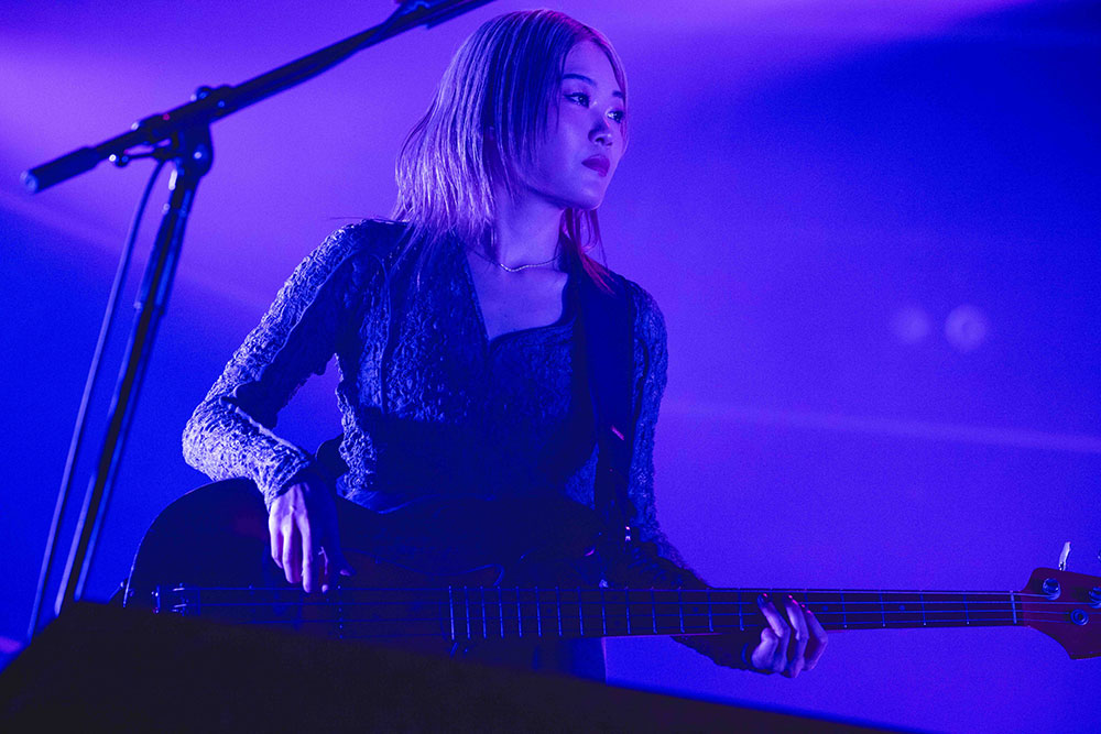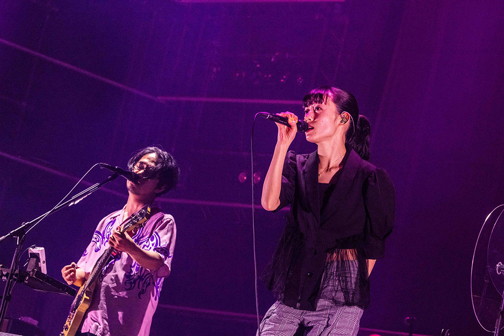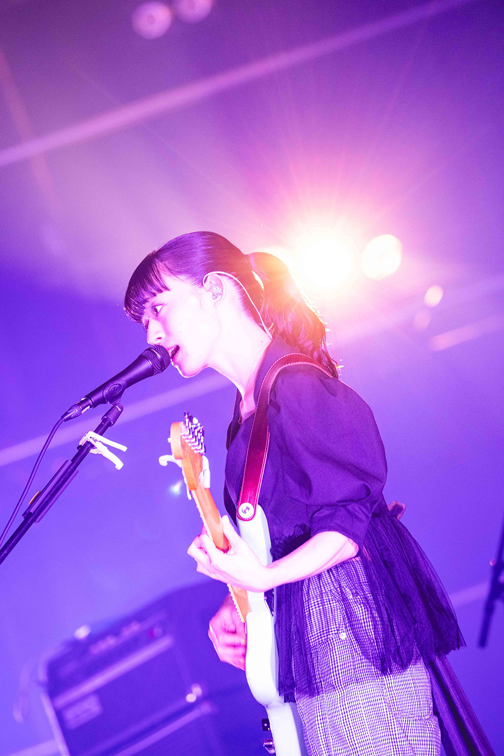 羊文学は「mother」から塩塚モエカ(Vo/Gt)の凛とした歌声、河西ゆりか(Ba)のグルーヴィなベースラインで会場の熱をじっくりと高めていく。 清廉とした独自の世界観があっという間に観客を引き込んでしまい、続く「永遠のブルー」でも、塩塚が紡ぐ心地よいギターサウンドがすっと体に浸透していくのがよく分かる。