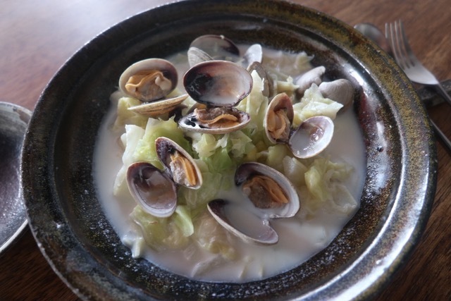 『春キャベツとあさりの酒蒸しミルクスープ』