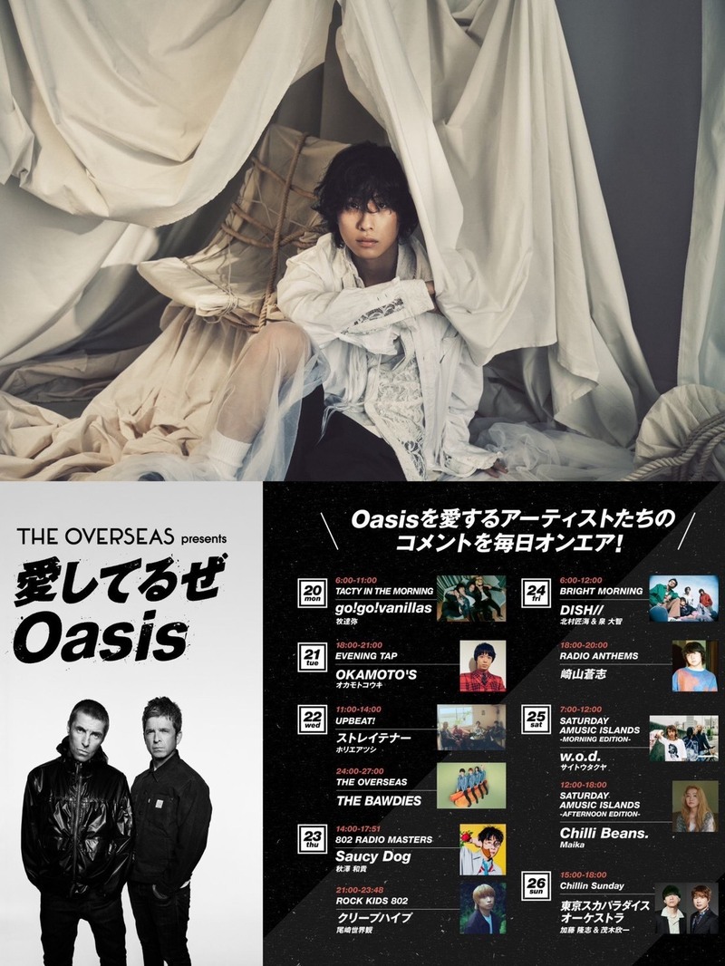 3時台後半には、オアシスの復活と来日をお祝いする企画「愛してるぜOasis」!この番組には、東京スカパラダイスオーケストラ 加藤隆志さん、茂木欣一さんからコメント到着します。