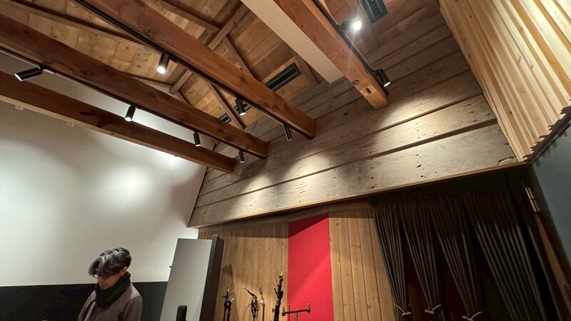 振動が伝わらないように、防振ワイヤーで蔵の中に蔵を釣っている新しい形のスタジオです…!
