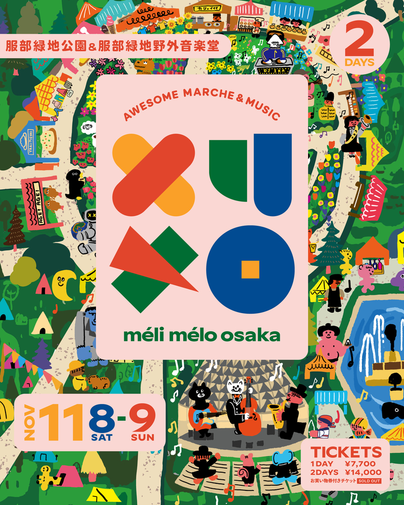 料金詳細 | 【méli mélo hall(野外音楽堂)】有料エリア 1DAY:¥7,700-/2DAYS通し券:¥14,000- 1DAY 小中学生チケット:¥1,500-/2DAYS通し券 小中学生チケット:¥3,000- 【arcade】【shop】【food】【workshop】は無料エリアとなります |