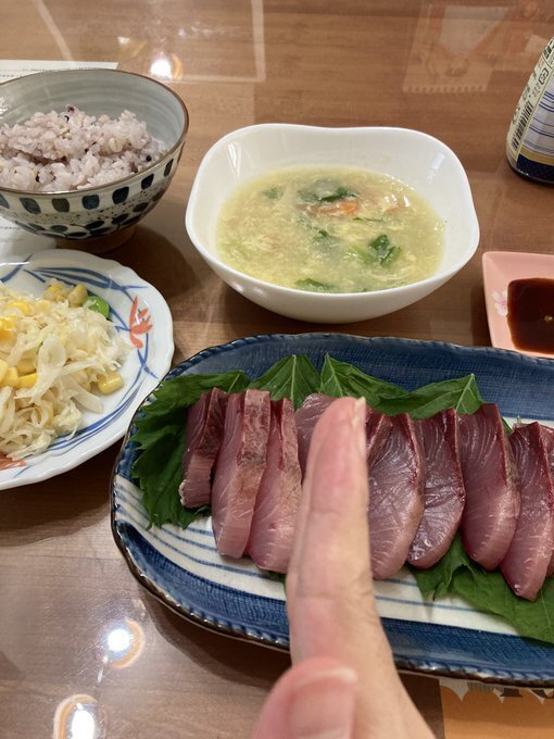 「ハマチに、汁もの、サラダ」…のお写真♪