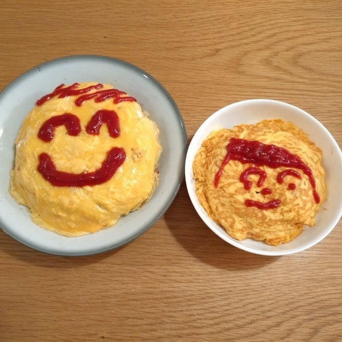 ケチャップで描いたお顔のイラストがかわいいです(⋈◍>◡<◍)。✧♡