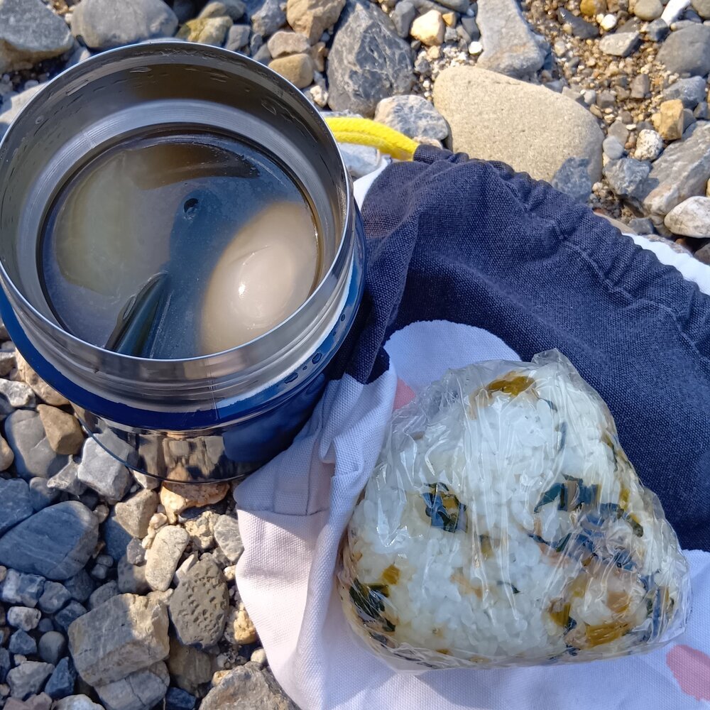 「川辺で食べる、おでんとおにぎり」…のお写真♪